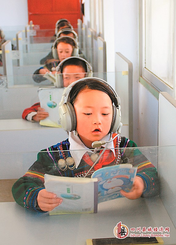 布拖县特木里小学的彝族孩子们在语音室里上课