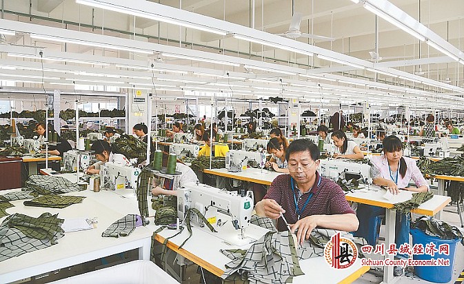 图为落户于仪陇县归雁经济产业园的美乐佳服饰有限公司制衣车间。(仪宣供图)