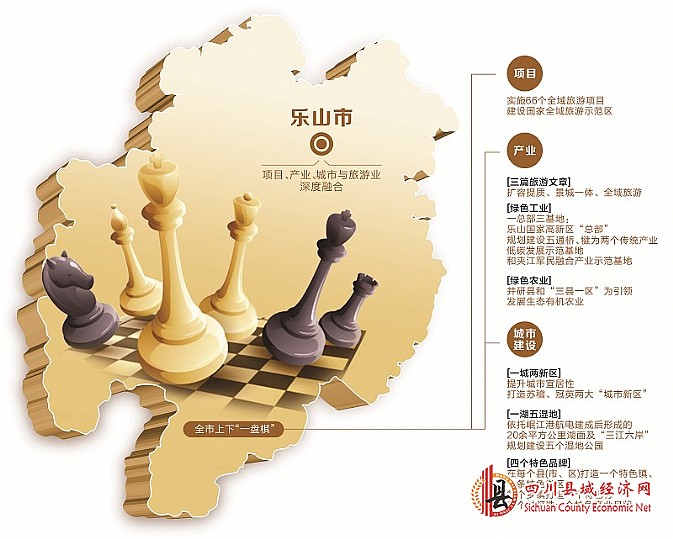 建立农业主导产业,乐山整合农业强县与发展滞后的山区地区,规划“一盘棋”的生态农业,建成全省最大的有机茶叶、有机竹笋基地。农村农业与旅游业实现“联姻”,目前乐山市基本形成规模的乡村旅游点达1075个。