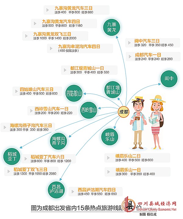 以从成都出发为例,记者罗列了一些热门线路指导价。