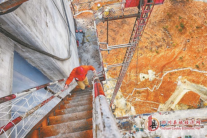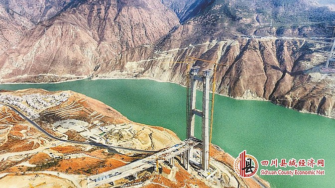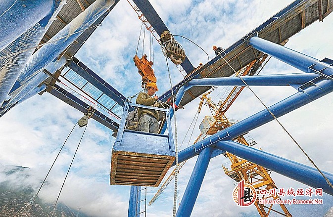 泸定大渡河兴康特大桥是雅康高速公路的重点控制性工程之一,是一座建在高海拔、高地震烈度带上的超大跨径钢桁梁悬索桥,采用钢混叠合桥道系,造价超过10亿元,因建设技术难度大被誉为“川藏第一桥”。两岸主墩索塔高188米,塔顶至河面垂直高差364米,桥横跨大渡河,但在河中没有桥墩,采取的是悬索桥设计,在两岸修建两塔、两锚,作为支撑和受力,桥面以悬索拉伸。未来,大桥将以1100米的超长跨径连通大渡河两岸,变天堑为通途。