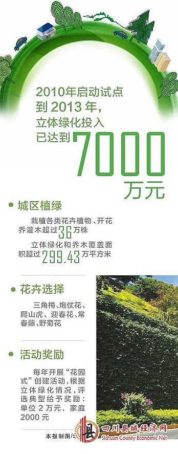 早在2009年,攀枝花就在“花城景观打造”五年规划中明确了立体绿化任务。2010年启动试点,到2013年,该市投入到立体绿化工作的相关资金已达到7000万元,最近几年还在增长。
