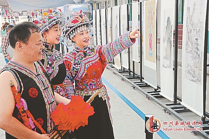 2010年8月11日,流动博物馆走进泸州叙永县麻城乡。图为苗族同胞观看大千书画。