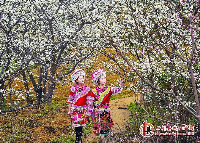 3月19日,叙永县赤水镇一对苗家姐妹漫步在桃李花海里。李欣 摄