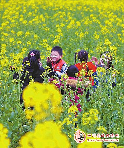 3月19日,巴中市通江县新场镇油菜花海里,孩子们在游戏玩耍。程聪 摄