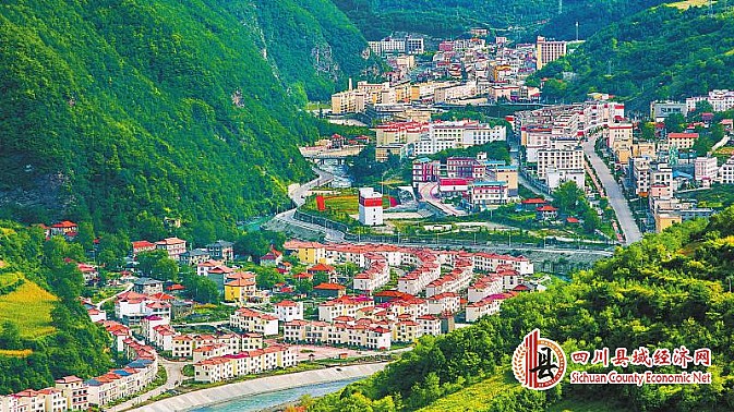黑水县是国家级贫困县,全县把99条沟分成6大沟域,规划发展6大产业,带动群众脱贫增收。今年,全县28个村将完成脱贫摘帽任务。图为掩映在青山绿水间的黑水县城。余阳 摄(视觉四川)