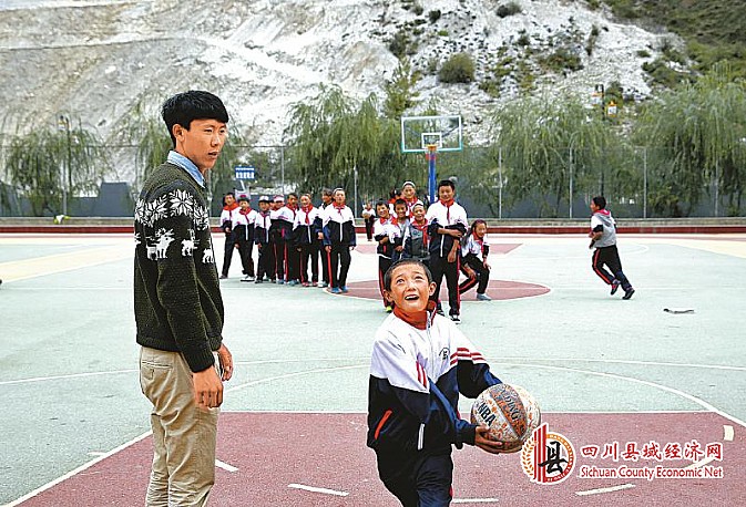 稻城县城关小学学生在老师指导下练习投篮。刘磊 摄