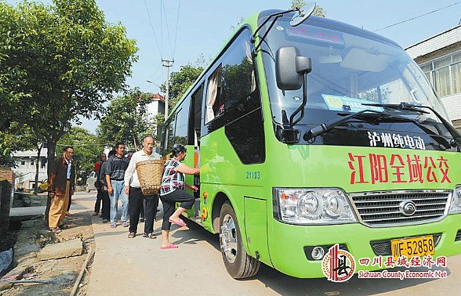 泸州市江阳区泰安镇,村民乘坐纯电动公交车。