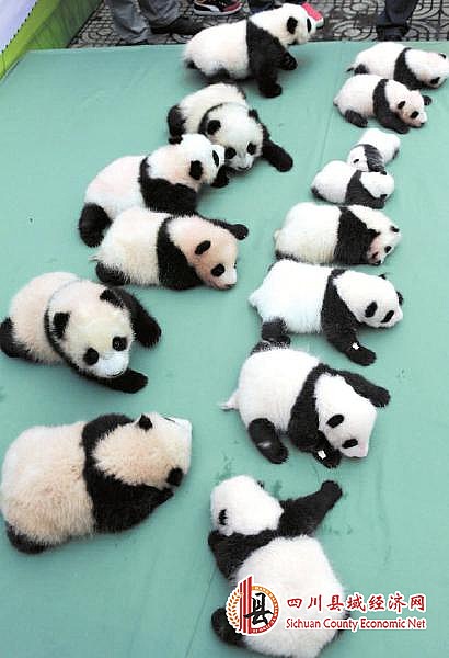 在中国保护大熊猫研究中心雅安碧峰峡基地,集体亮相的大熊猫宝宝萌化众人心。