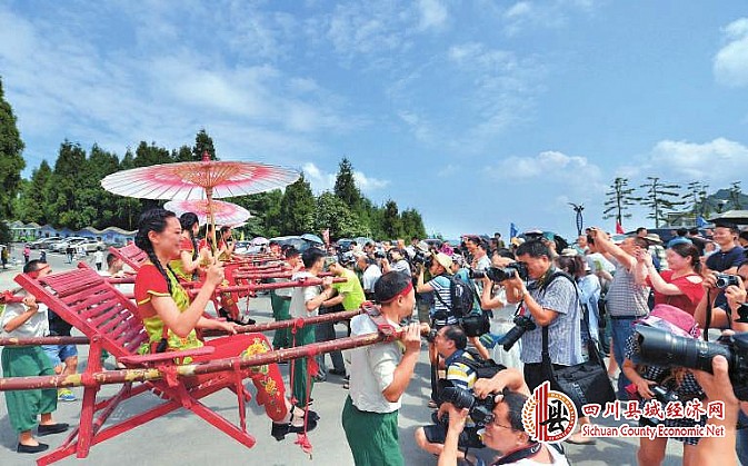 富有民俗特色的华蓥山“滑竿抬幺妹”吸引了游客的“长枪短炮”