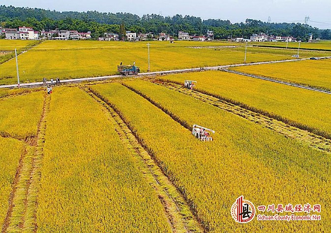 青神县西龙镇将昔日的低产田按标准化农田进行集中成片改造后,引进业主通过机械化生产发展优质稻,促进农民增产增收。姚永亮 摄(视觉四川)