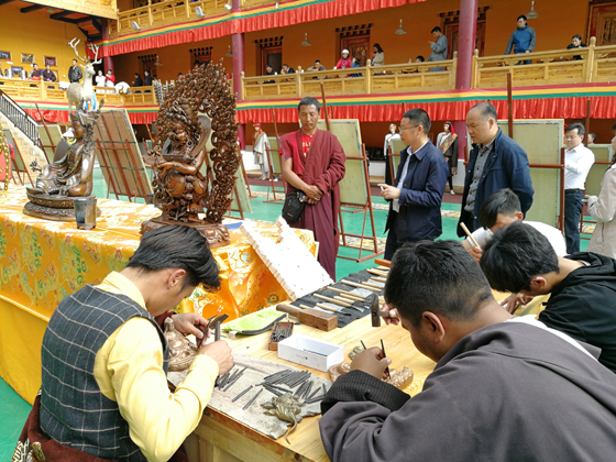 壤塘县立足壤塘文化优势,高度重视文化资源的挖掘利用,以实现富民强县为着眼点和着力点,科学谋划,靶向施策;坚持量力而行、尽力而为,由点扩面培育文化产业,将文化优势转化为经济优势、产业优势。通过“创建传习基地”进行“生产性保护”,创办非遗传习所26个,涵盖藏香、藏茶、藏药、唐卡、石刻、陶艺、梵乐、服饰、民歌等非遗文化产业。作为非遗文化生产性保护的传习所,带动了众多的贫困户孩子就业和创业。2017年,26个传习所中实现利润的有15个,占比达57.6%,累计实现近500万元的经济效益。如宗科石刻传习所20人,年均营业额在60万元左右,实现人均增收3万元。