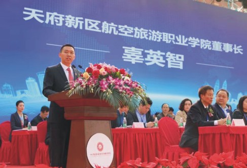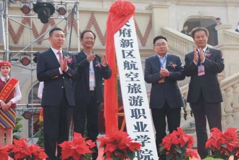 上午9时,2018年“职业教育办学吸引力及人才质量提升工程”高峰论坛“新时代航空服务高端人才培养模式改革创新”研讨会暨天府新区航空旅游职业学院揭牌仪式隆重举行。