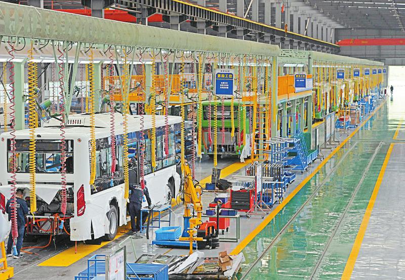 雅安芦天宝飞地产业园区内四川新筑通工汽车有限公司的新能源公交车生产线。(记者 何海洋 摄 视觉四川资料图片)