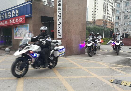 11月13日,帅气威武的特巡警身着崭新的黑色警服,骑着高性能警用摩托车,排成三行,从广安市广安区公安分局出发,向思源广场方向驶去,成为街头一道靓丽的风景。标志着广安区公安“铁骑”中队正式成立!这是广安市首支“铁骑”城区治安巡逻队正式亮相。