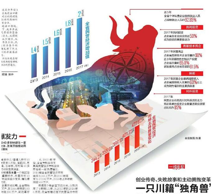 不仅是在进出口领域,也不只是在当下。改革开放40年来,四川民营经济蓬勃发展,不断成长壮大,从弱到强,从小到大,从少到多,从四川走向全国乃至全球,民营经济在全省经济各个环节、各个领域都发挥了巨大的作用,为四川经济激荡出澎湃动力与活力。