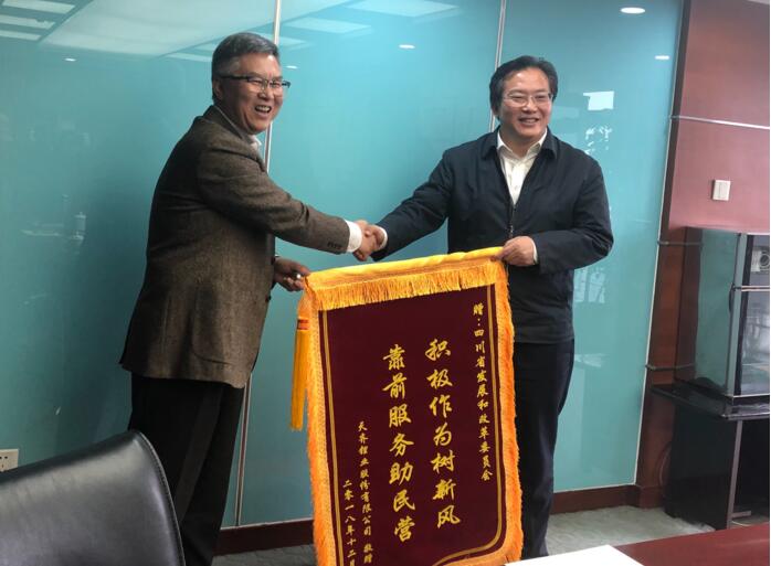 12月26日下午,全国人大代表、天齐锂业股份有限公司董事长蒋卫平、总裁吴薇一行拜访省发改委主要领导,向省发展改革委赠送了“积极作为树新风,靠前服务助民营”的锦旗,对省发改委支持企业走出去,开展海外投资并购,拓宽外部发展空间表示感谢,并就民营企业要深度融入“一带一路”建设,天齐锂业要争做新能源行业全球“玩家”,为民族复兴大业做贡献等话题进行深入交流。