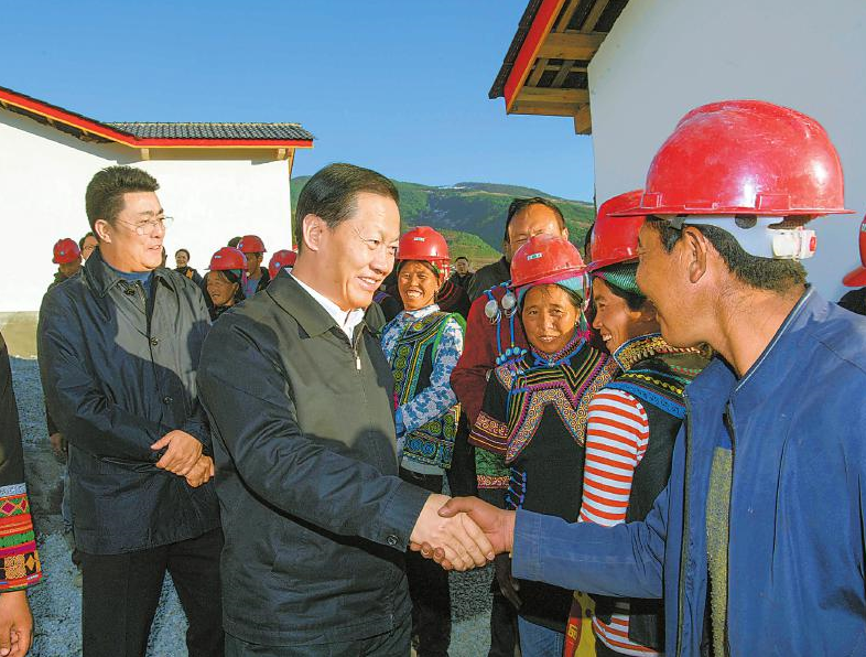 1月2日,省委书记彭清华到凉山州昭觉县普诗乡李子村调研,了解脱贫攻坚工作推进情况,看望慰问在易地扶贫搬迁安置点参与房屋建设的当地彝族群众。