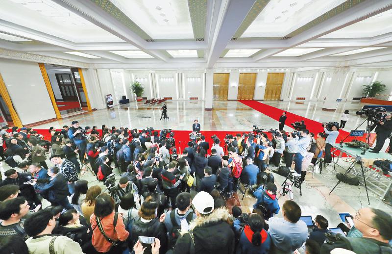 3月3日下午,全国政协十三届二次会议开幕会刚刚结束,人民大会堂的一侧就被记者团团围住——2019年全国两会首场“部长通道”正式开启。
