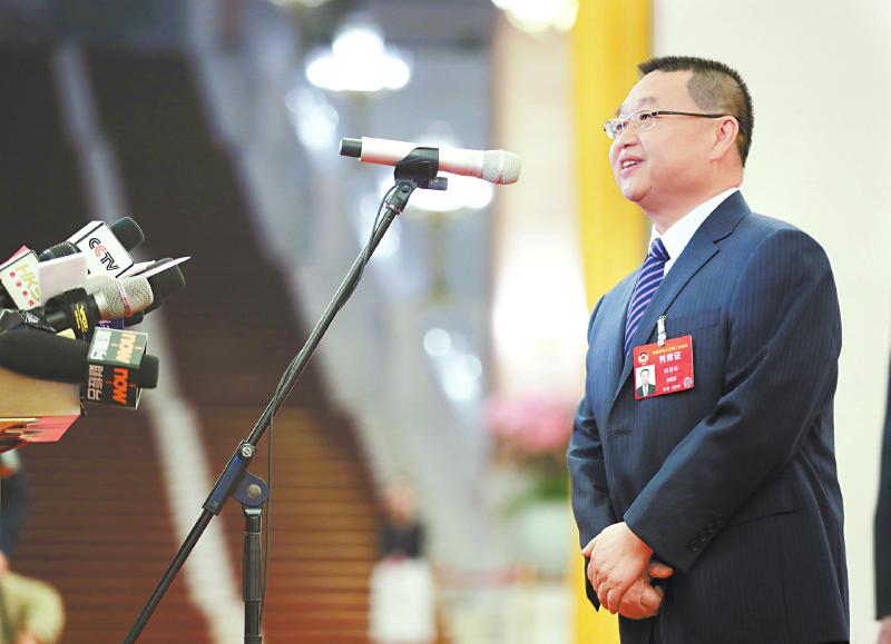 国家医疗保障局局长胡静林在“部长通道”接受采访。 新华社记者才扬摄