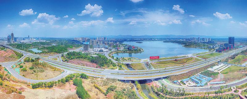 天府新区以新发展理念为指导,将乡村、经济、生态三者统一于公园城市建设之中,形成农耕文明、工业文明和生态文明交相辉映的城市形态,赋予了现代化城市的“绿色属性”。如今,“人城境业”高度和谐统一的大美公园城市形态已在天府新区初步显现。图为4月22日拍摄的成都科学城。摄影 记者 何海洋