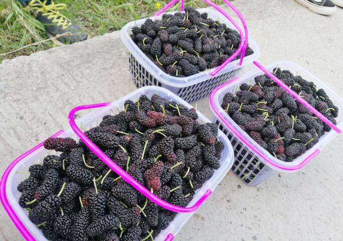 桑果丰产时大株的可产10余斤,只买单斤15元,1人买一框的50元有2公斤多,单是桑果产值年收入40余万元;几百亩的桑果采完桑叶用于养蚕300张纸,一张纸蚕茧可卖1000元左右,产值可收入30余万元;养完蚕后的桑树到了打枝季节,就剪下树技打碎废物利用种磨菇,桑树磨茹有着高质量的营养价值,很多顾客上门来买,销路也不错,现在一年产值可收入3万余元。