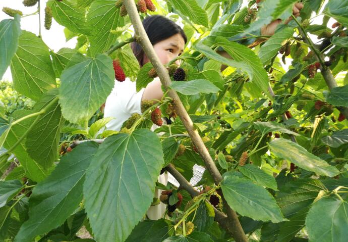 每年的四五月份,吃完了酸甜可口的樱桃,就该桑葚闪亮登场啦!饱满多汁的红黑桑果带着酸甜滋味,一颗颗微微颤动的紫黑桑果,散发着香甜诱人的气息,采一颗放入嘴里,酸酸甜甜的汁液在口中四溅开来,甜蜜蜜的滋味一直渗到心里!桑葚滋补肝肾润肠通便,营养价值丰富的桑葚又被称为“民间圣果”。岳池县普安镇黄泥墙村的村民程孝云抓住了这个收获前景,在川东的广安还没有一个规模采摘桑葚的基地,原来在外地发展林下养殖的他发现了这个农业致富接点,就回到自己家乡创业, 2015年承包了当地村民的土地300亩,在普安镇党委政府的指导下,种下桑葚树20000余株,可解决当地富裕劳动力家门口务工20人轮换上班。