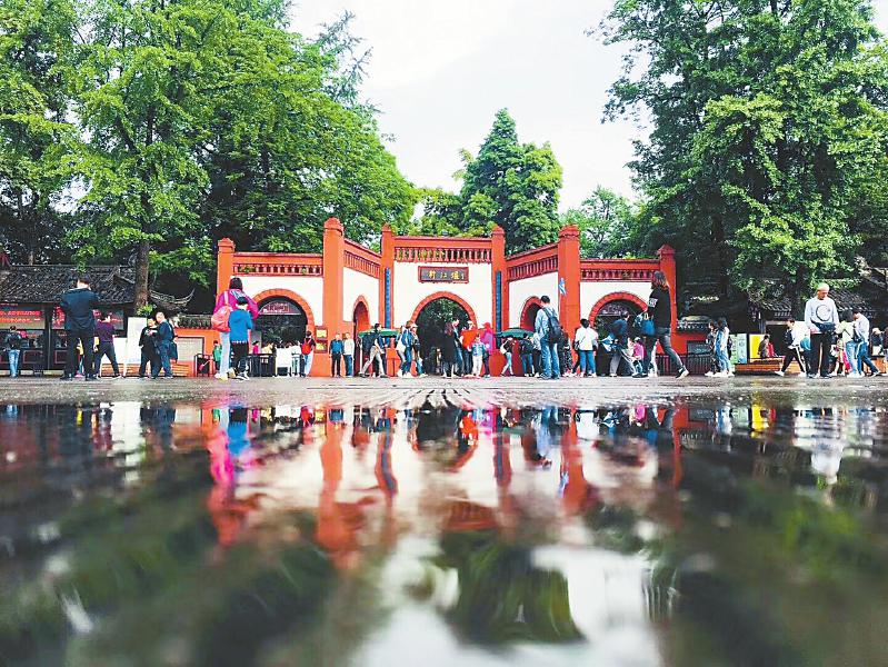 雨后的都江堰景区人气依旧高。青城山-都江堰景区供图