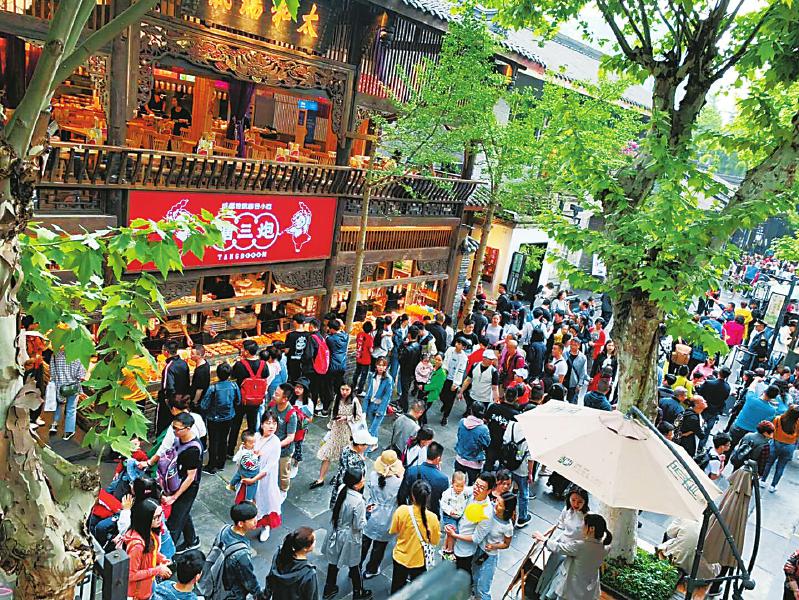 假日期间的成都宽窄巷子。宽窄巷子景区供图