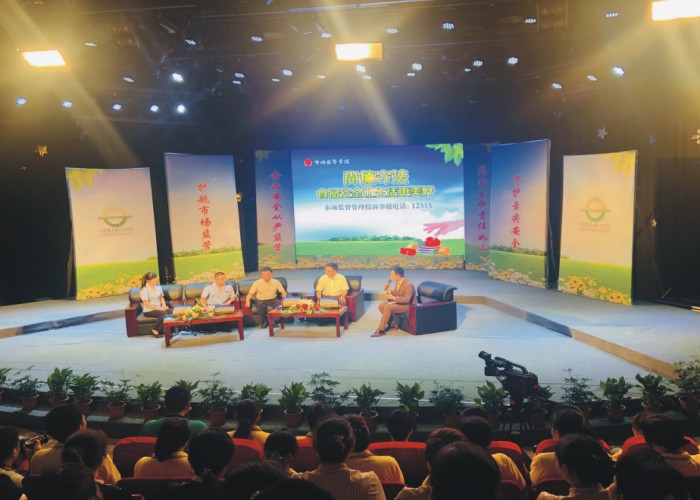 6月24日下午,在广安市电视台演播厅,市食安办组织录制了《賨州访谈》食品安全宣传周特别节目。广安市食安办主任、市场监管局局长欧彦,市食安办副主任、市市场监管局党组成员侯明荣,广安市蚕业站站长欧儒金,以及市市场监管局科技与宣传科科长淡娟,作为节目嘉宾,就食品安全问题进行沟通交流。