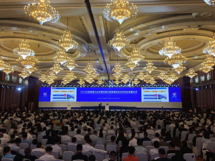 6月26日上午,2019川商发展大会开幕式暨川商发展项目合作协议签署仪式在成都举行,来自境内外的1500多名川商、知名企业和商(协)会负责人齐聚蓉城,共叙桑梓之情、共谋发展新篇。省委书记彭清华出席开幕式暨合作协议签署仪式并致辞,省委副书记、省长尹力主持,省政协主席柯尊平出席,全国工商联党组副书记、副主席樊友山致辞。