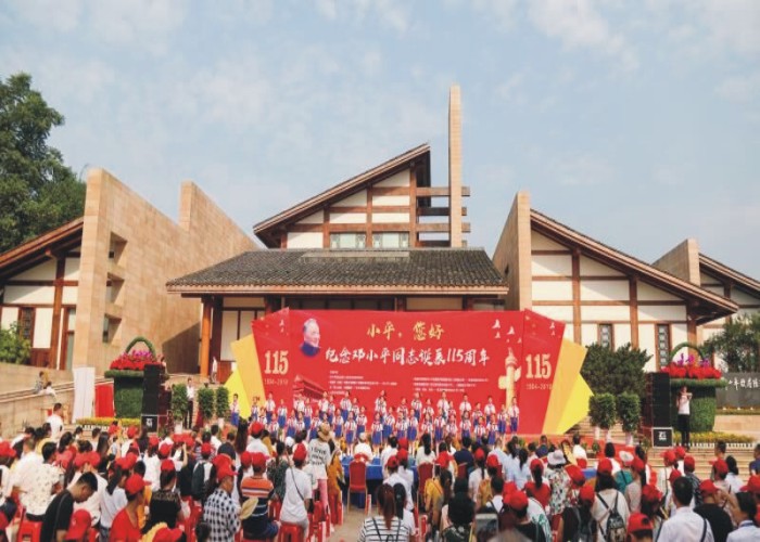 在邓小平故居陈列馆广场,邓小平同志诞辰115周年纪念封首发式、“同心向党▪共绣国旗—庆祝中华人民共和国成立70周年”专场活动、系列捐赠活动等在这里举行。