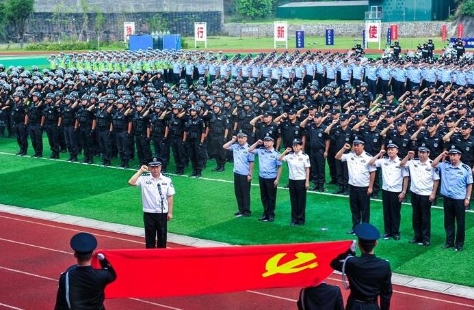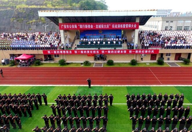 演练结束后,全体参演民警、辅警面向党旗庄严宣誓:“坚决做到对党忠诚、服务人民、执法公正、纪律严明;坚决做到团结奋进、敢打必胜 、践行使命、誓保大庆。”铿锵誓言在整个演练场回荡,全面展示出广安公安在习近平新时代中国特色社会主义思想指引下,不忘初心、牢记使命,忠诚担当、履职尽责,为推进广安高质量发展保驾护航的坚定决心。