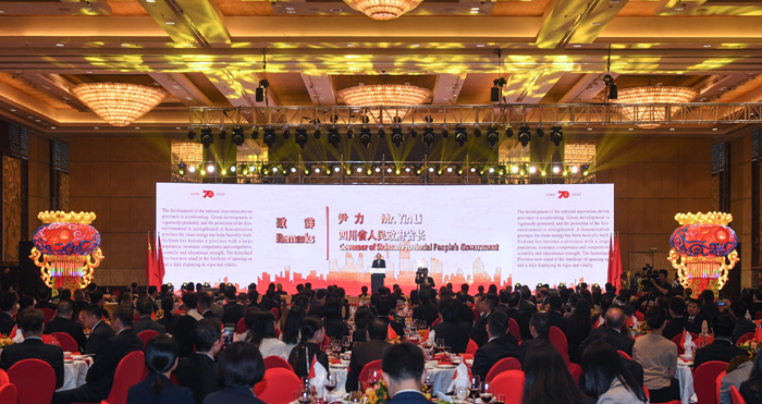 9月25日晚,省政府举行2019年国庆招待会,庆祝新中国成立70周年。省委副书记、省长尹力出席招待会并致辞,代表四川省委省政府和全省人民,向出席招待会的外国领事官员和中外嘉宾表示热烈欢迎,向港澳同胞、台湾同胞和海外侨胞致以诚挚问候,向所有关心支持四川经济社会发展的国际友人表示衷心感谢。
