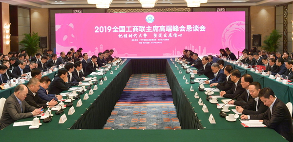 10月9日下午,出席2019全国工商联主席高端峰会的嘉宾相聚成都,参加峰会恳谈会,畅叙合作情谊、共话美好未来。全国政协副主席、全国工商联主席、中国民间商会会长高云龙,省委书记、省人大常委会主任彭清华,中央统战部副部长、全国工商联党组书记、常务副主席徐乐江出席恳谈会并讲话。省政协主席柯尊平,省委副书记邓小刚出席。