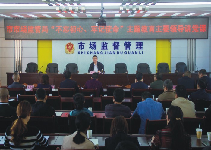 10月18日,广安市市场监督管理局党组书记、局长欧彦围绕“不忘初心、牢记使命”主题教育,以《坚定信念勇担当,市场监管敢作为》为题,为党员干部上了一堂生动的党课。会议由局党组成员、机关党委书记杨小红主持,市市场监管局全体班子成员、县处级干部,各科室、下属单位、工青妇负责人,机关党委下属各支部委员会委员共80余人参加党课。