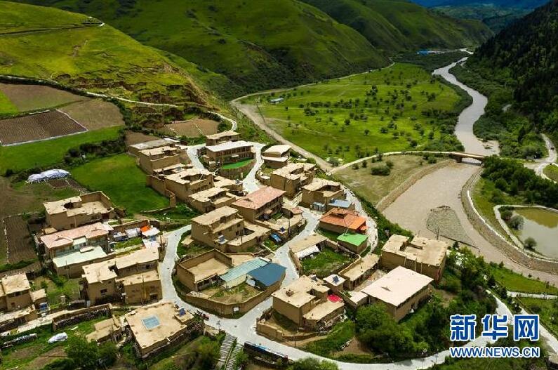 这是6月15日拍摄的神座景区神座村里的藏式住宅(无人机照片)。新华社记者沈伯韩摄