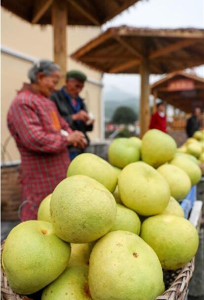 10月11日,四川省华蓥市禄市镇山门口村村民在出售蜜柚。