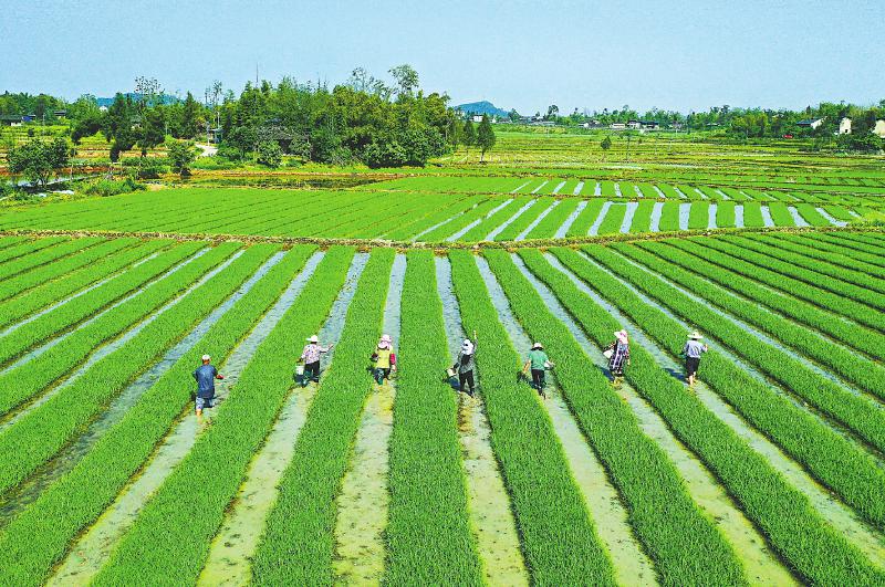 4月15日,广安市广安区花桥镇花桥村群众在田间为秧苗追施肥料。连日来,随着气温回升,广安区有序开展春耕备耕工作,为早稻栽插做好准备。 张国盛/摄(视觉四川)