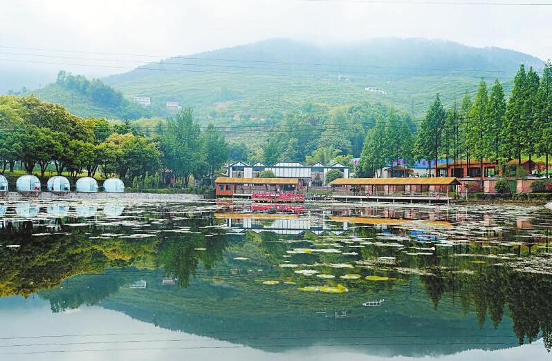 广安华蓥市依托蜜梨产业和花卉产业,在禄市镇凉水井、月亮坡、山门口等村,相继兴建红色文化地标,以及梨香花海庄园和蜜梨主题公园、蜜梨度假村,实现农文旅融合发展,助力乡村振兴。图为蜜梨度假村一角。