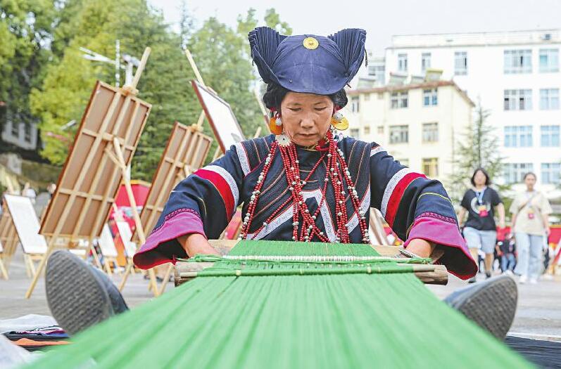 织布表演。
