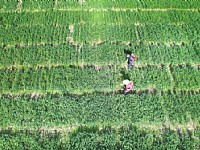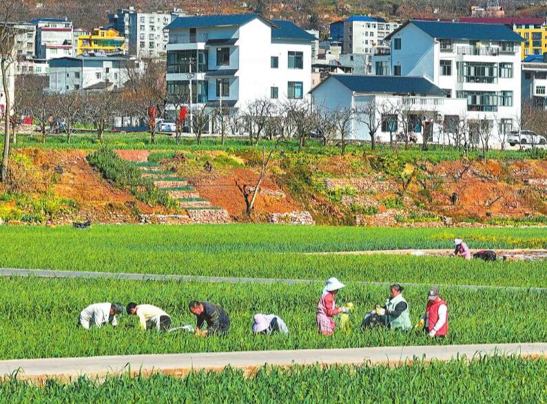 近日,汉源万亩粮经复合现代农业园区内,村民忙着采收蒜薹。今年,汉源大蒜种植面积近3.53万亩,预计可采收蒜薹2.14万吨。 雅安观察 黄刚 摄