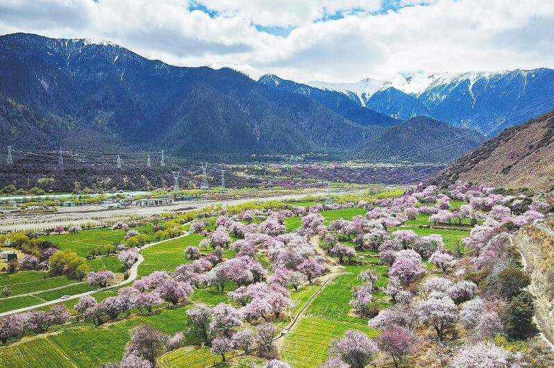 西藏林芝市巴宜区朵当村盛开的桃花(3月30日摄,无人机照片)。当日,林芝市第二十一届桃花旅游文化节开幕,各类活动精彩纷呈,吸引众多游客。