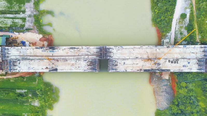 7月5日,资阳市雁江区的董家坝沱江特大桥即将全部合龙。它连接成资大道和成资渝高速公路,建成后将为成资一体化提速。 张志强 摄(C视觉)