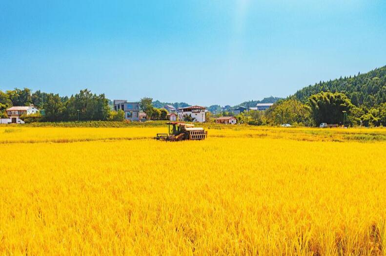 近日,资阳临空经济区临江镇红碑村60余亩集体经济水稻喜获丰收,预计亩产达1000斤,可实现村集体经济增收7万余元。 资阳观察 吴昊江 摄