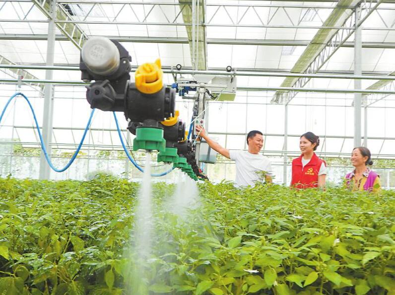 10月16日,在达州市达川区双庙镇二东村“数字育苗工厂”里,智能灌溉系统正在进行辣椒秧苗喷淋作业。 邓良奎 摄(C视觉)