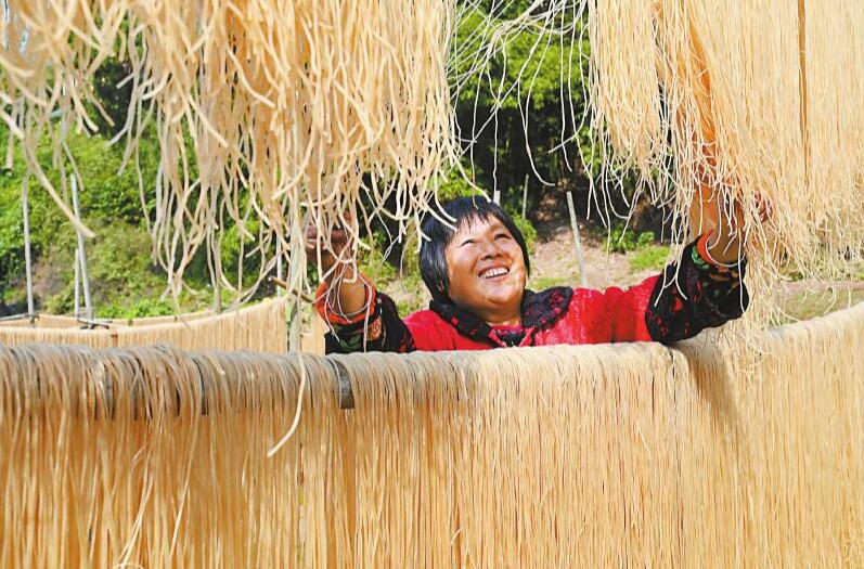 10月23日,内江市东兴区顺河镇见龙村,村民正忙着晾晒手工粉条。近年来,见龙村以“合作社+基地+农户”的方式,大力发展传统手工粉条加工,产品畅销云南、重庆等地,成为远近闻名的粉条村。兰自涛 摄(C视觉)