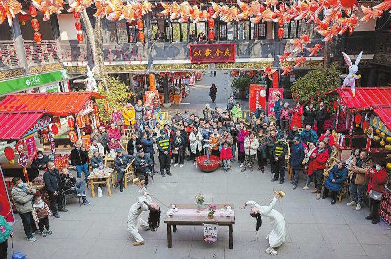 1月4日,市民和游客在德阳市凹街观看传统茶艺表演,体验四川茶道。 袁凤 摄(C视觉)