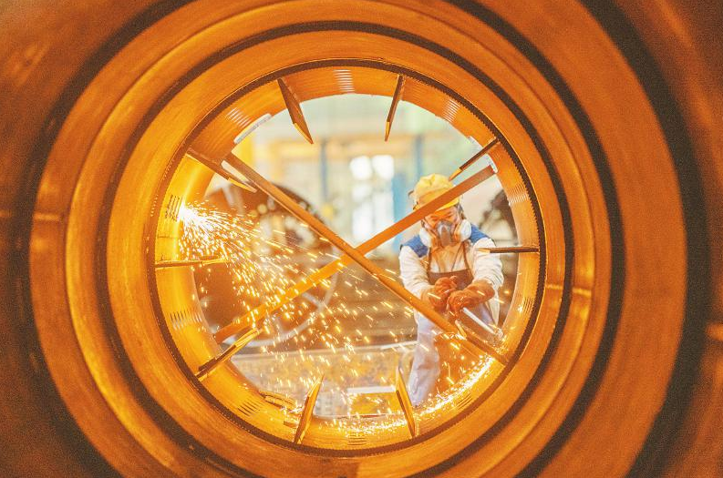2月5日,位于四川天府新区眉山片区的中建钢构(四川)有限公司加工车间内,工人正在赶制订单产品。翁光建 摄(C视觉)