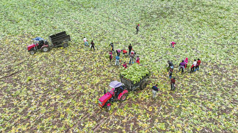 2月19日,工人在南充阆中市柏垭粮油现代农业园区采收芥菜。王玉贵 摄(C视觉)